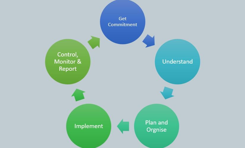 An energy audit ,and implementing savings projects, are part of ISO 50001 and of achieving your full energy cost savings potential. The energy industry has identified the following steps to realise your full potential – acting continuously.